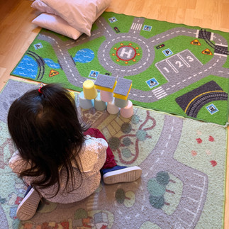 Die Kinder durften einen Morgen lang mit Alltagsmaterialien beschäftigen. Wir haben unser Bauzimmer mit den eigentlichen Spielsachen ausgeräumt und haben stattdessen Alltagsmaterialien hineingetan. Die Kinder waren am Anfang ein bisschen verwirrt, fanden es dann aber super.